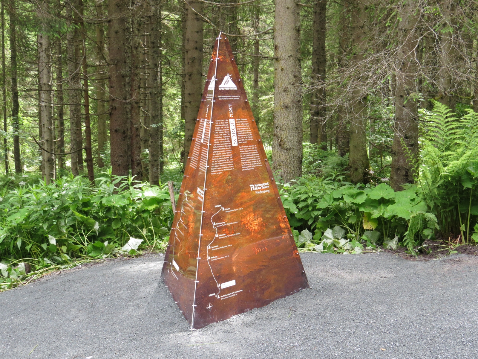 Der Krimmler Tauern war 1947 eine Schlüsselstelle für die Flucht von 5.000 jüdischen Männern, Frauen und Kindern aus Osteuropa. Ihr Ziel war eine neue Heimat – Palästina. Zum Gedenken an die Ereignisse von damals und an diejenigen, die den Flüchtlingen geholfen haben, wurde 2013 der Nationalpark-APC-Friedensweg mit insgesamt sieben Gedenktafeln entlang der historischen Fluchtroute von Krimml nach Kasern (Südtirol) eingerichtet. Mögen die Texte entlang dieser Route alle Menschen, die diesen Friedensweg beschreiten, in ihren Gedanken begleiten und sie ermutigen, hinzuschauen, zu handeln und zu helfen, wo und wann immer Unrecht ihre Wege kreuzt.