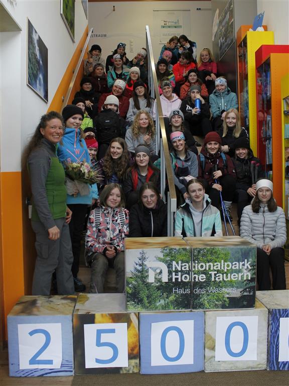 Aus der Statistik ist eindeutig zu erfahren: am 07.03.2023 wurde die 25.000er-Marke der lernenden Personen erreicht, welche das Umweltbildungszentrum besuchten. Unter der Gruppe der landwirtschaftlichen Lehranstalt Lienz bestimmte der Zufall, wer es denn schließlich werden sollte. Die Schülerin der Fachschule Betriebs- und Haushaltsmanagement fand die erfreuliche Nachricht in Ihrer Unterrichtsmappe. Die Leiterin des Hauses, Diplom-Biologin Brigitte Eckle, fragte interessiert nach: „Was hast Du heute Neues gelernt?“ - „Wie Wassermoleküle aufgebaut sind. Und, dass ich sparsam mit dem Wasser umgehen soll!“ war die Antwort der 14-jährigen Hopfgartnerin.