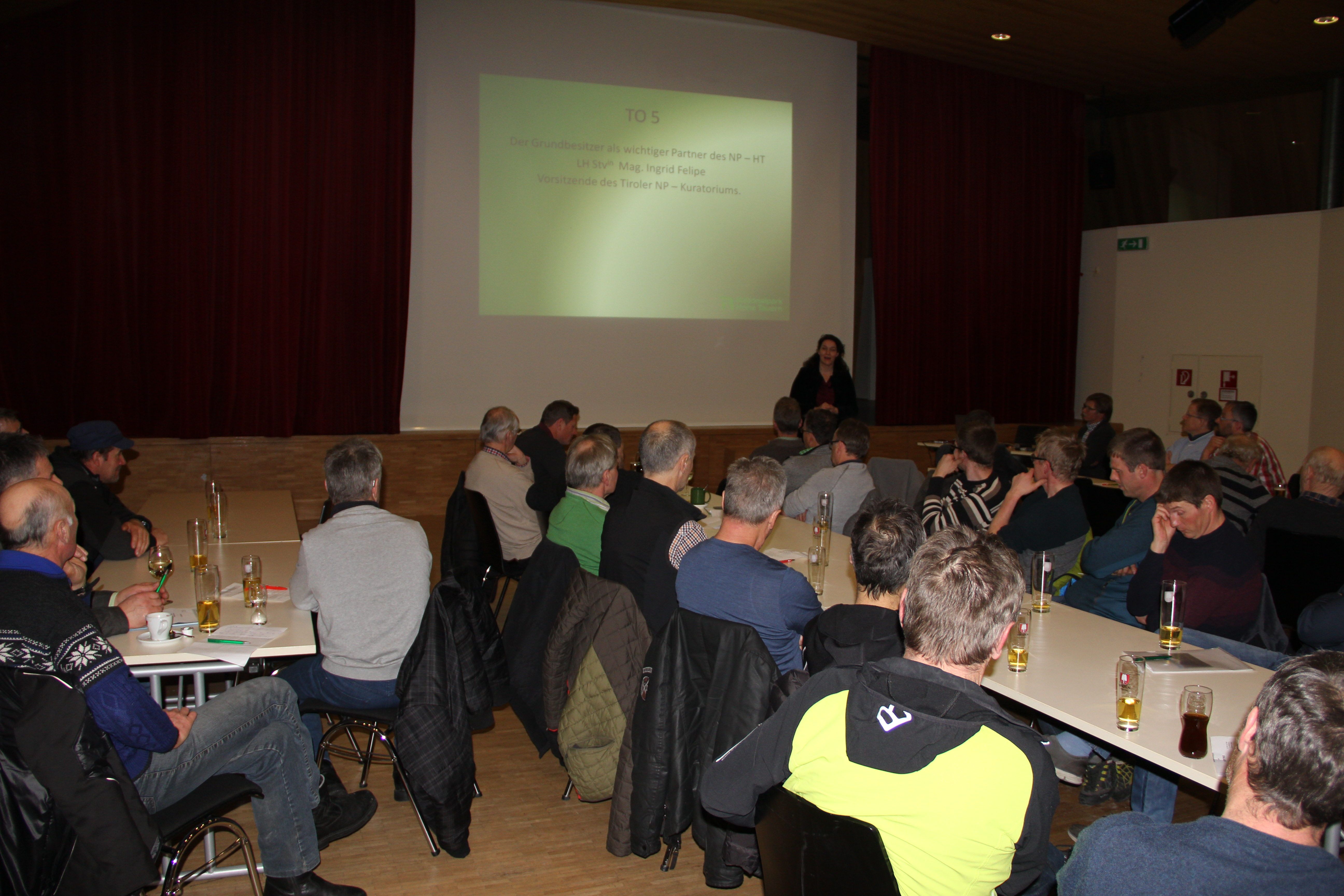 „Der Grundbesitzer als wichtiger Partner des Nationalparks Hohe Tauern“ war Thema von LHStv. Ingrid Felipe in ihrer Funktion als Vorsitzende des Tiroler NP- Kuratoriums. Anschließend stand die für den Nationalpark zuständige Landesrätin auch für eingehende Diskussionen rund um aktuelle Themen im Nationalparkgeschehen zur Verfügung. Obmannn Klaus Unterweger berichtete unter anderem über die Unwetterkatastrophen im Kalser Dorfertal in den vergangenen zwei Jahren und die nachfolgenden Aufräumarbeiten und das konstruktive Zusammenspiel mit den Behörden als positives Beispiel.